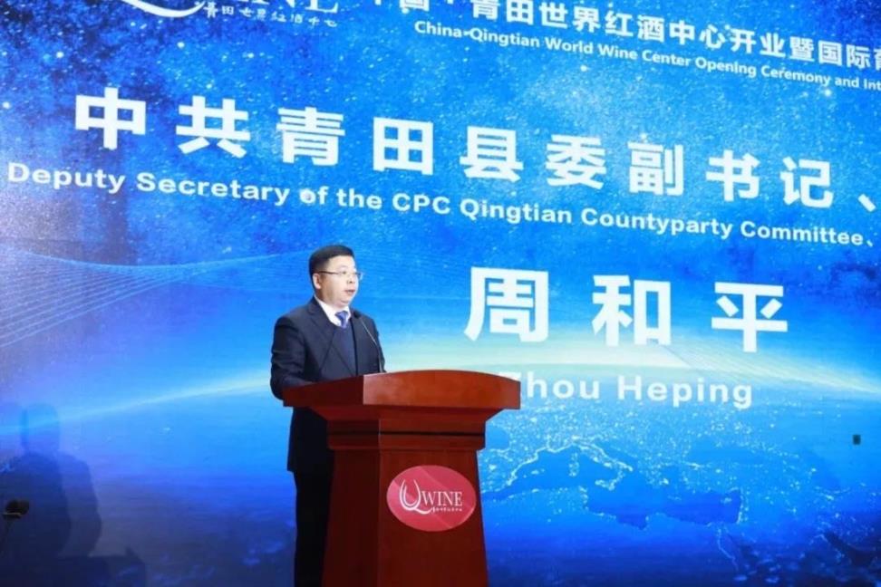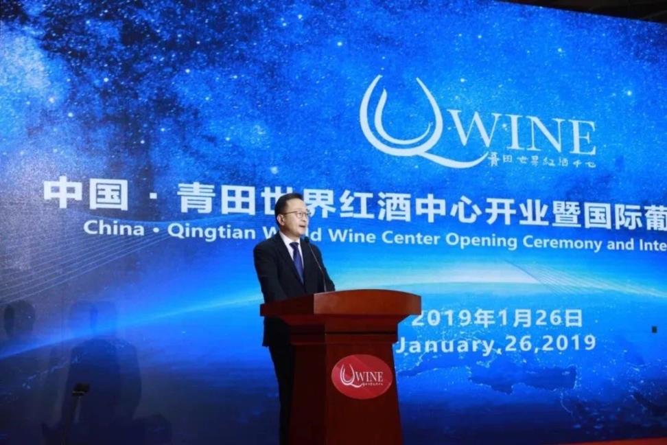 2019年1⽉26⽇,协会主席詹伟平应邀出席“⻘⽥·世界红酒中⼼”开业盛典并致辞
