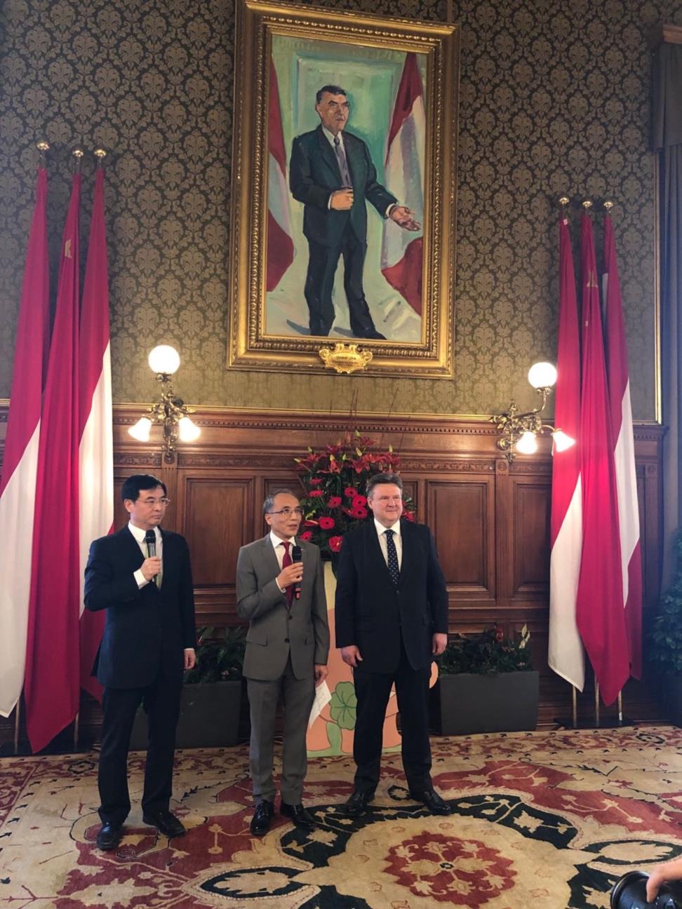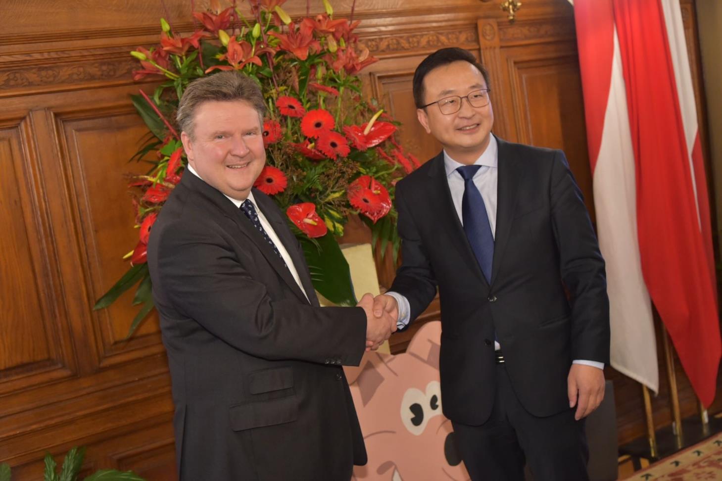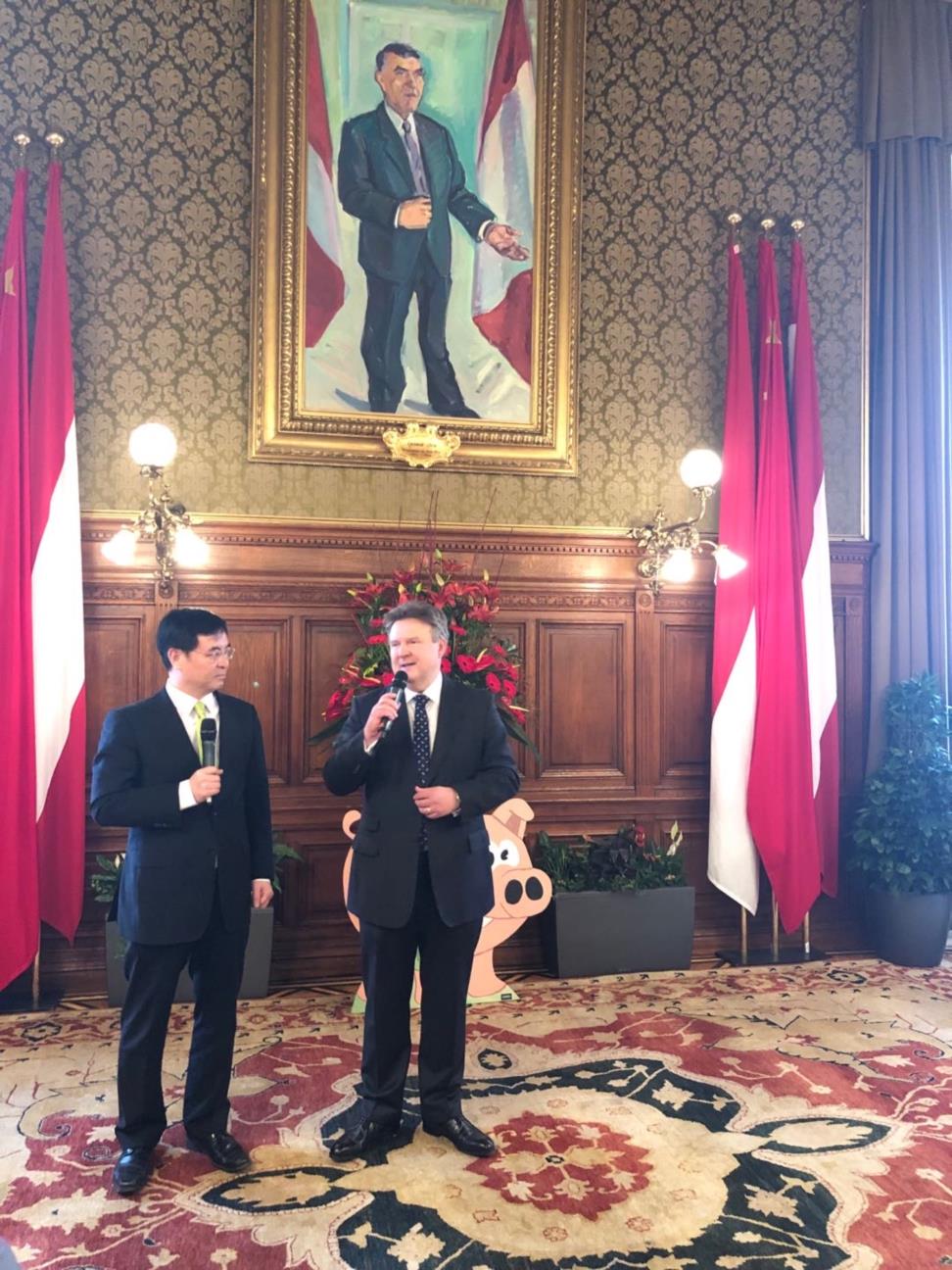 2019年2⽉11⽇,维也纳市⻓Ludwig在市政府⼤厅举办庆祝中国新春活动,Ludwig市⻓和李晓驷⼤使分别致辞,协会主席詹伟平应邀出席活动