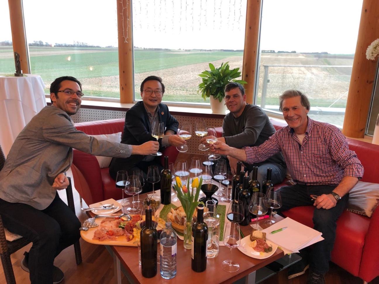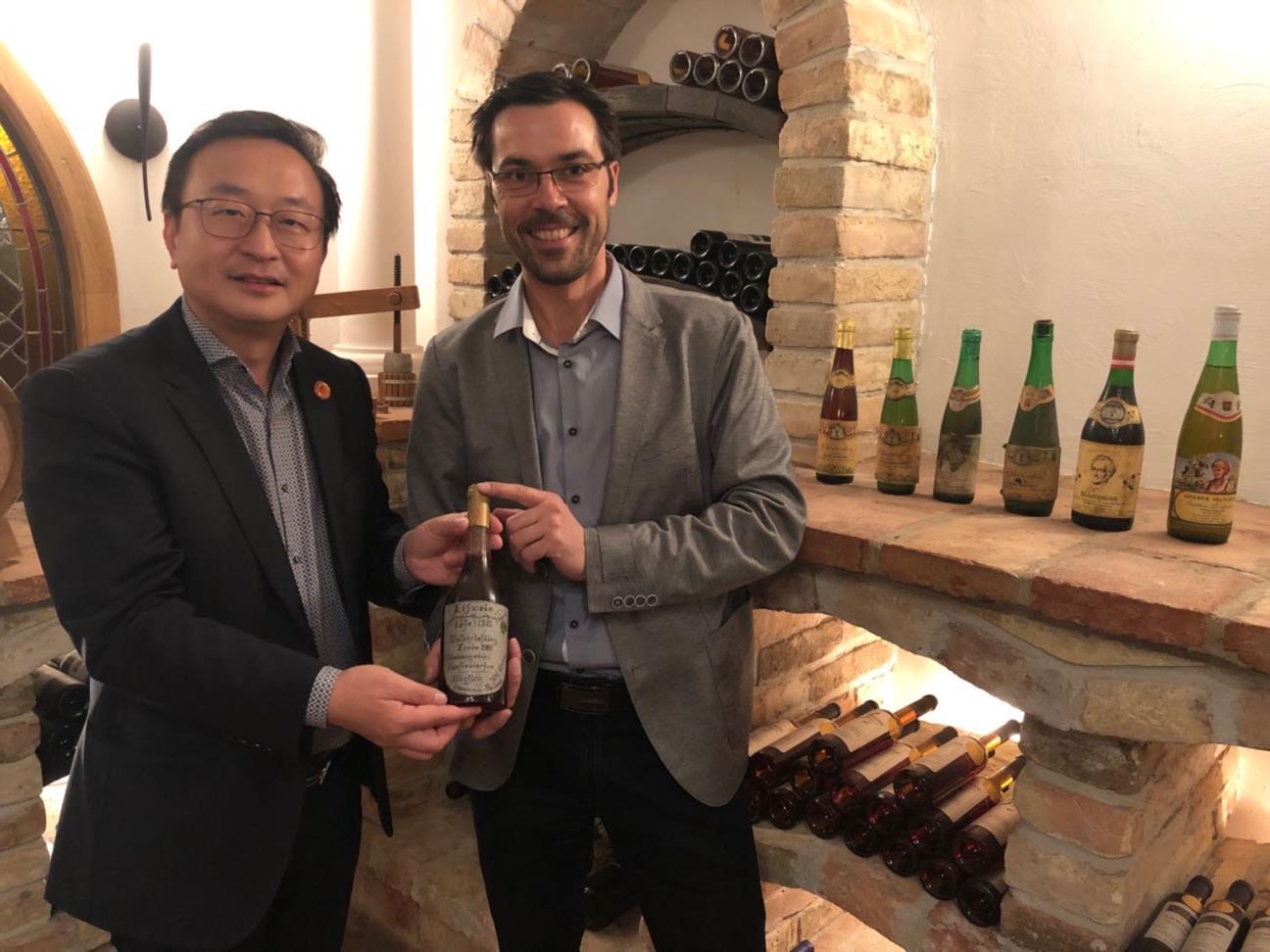 2019年3⽉8⽇,协会主席詹伟平赴下奥地利州Migsich酒庄考察,与酒庄两代庄主洽谈去中国参加进⼝葡萄酒展会