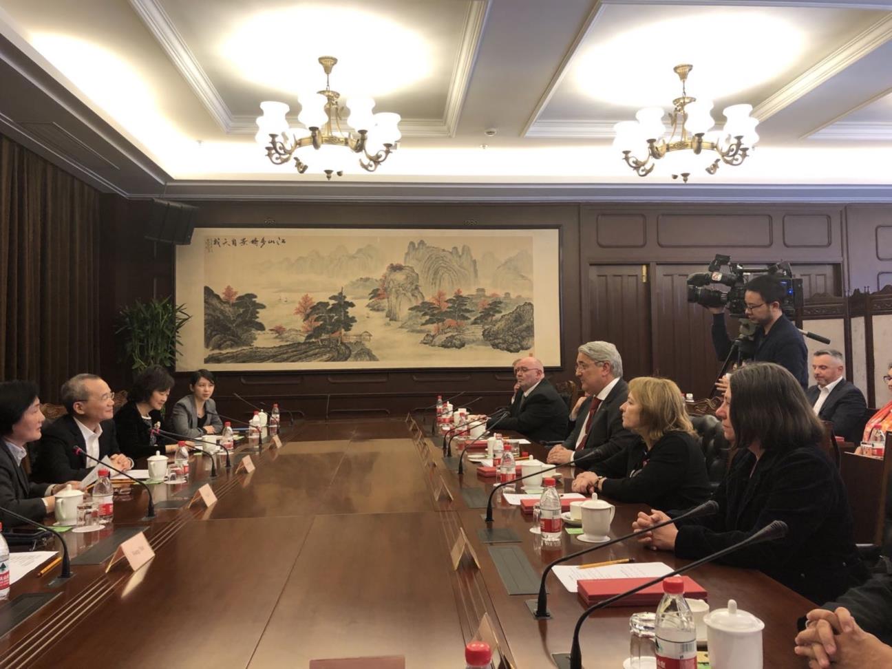 2019年4⽉1⽇,协会主席詹伟平随同维也纳多瑙区政府代表团访问上海,拜访了上海市政协、奥地利驻上海总领事