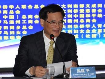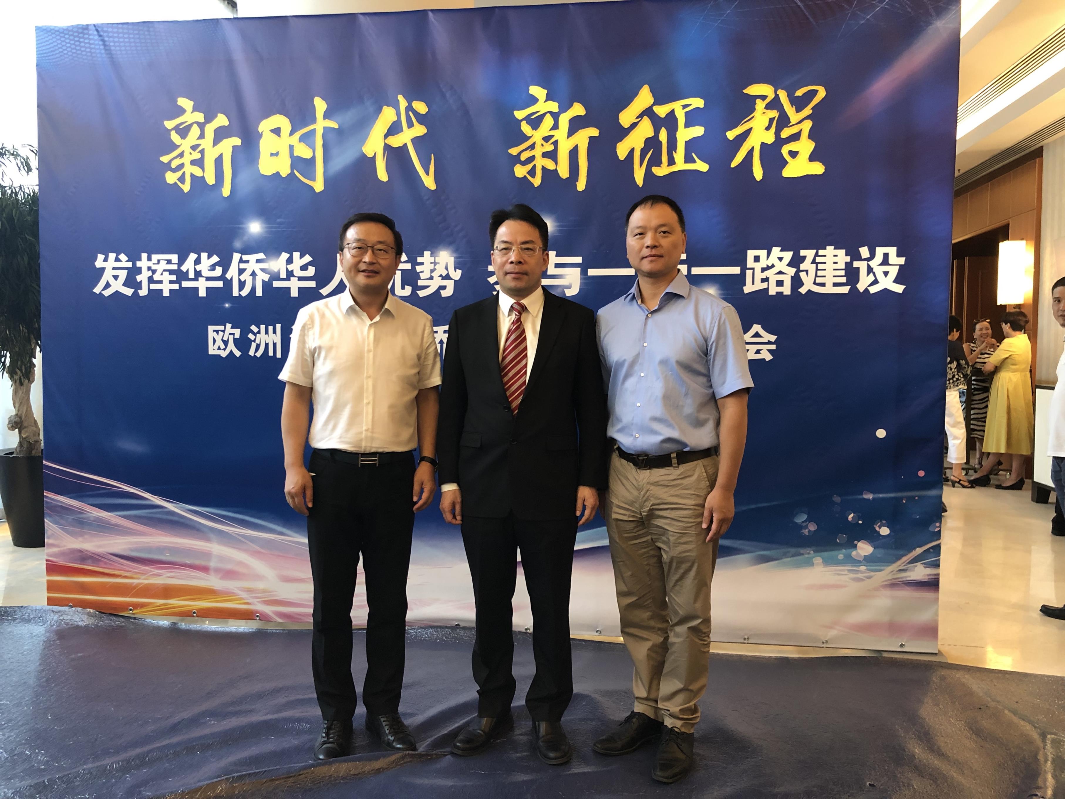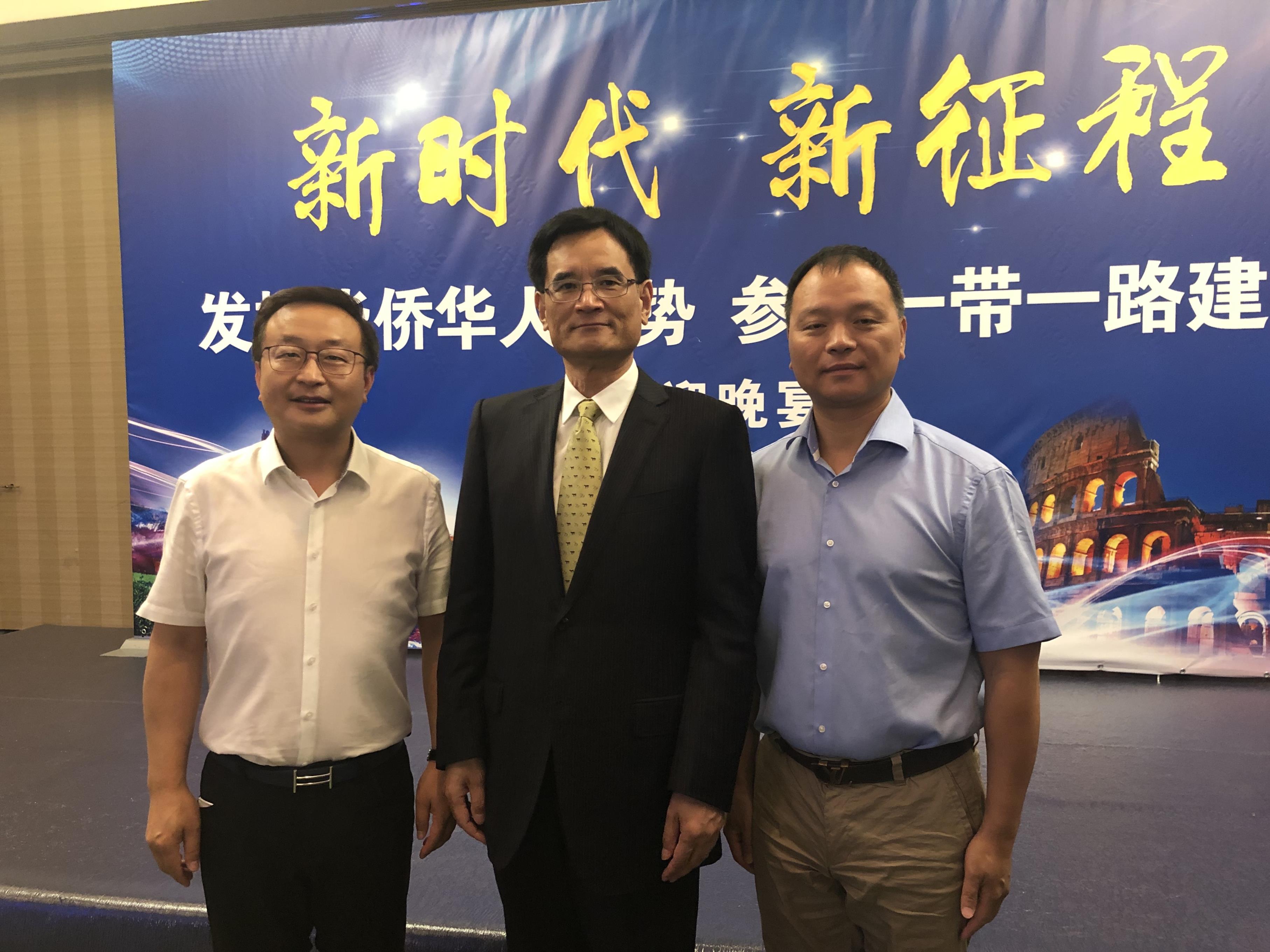 2019年7⽉16⽇,欧洲浙江籍侨团负责⼈座谈会在罗⻢召开,省委常委、统战部⻓熊建平,省侨联主席连⼩敏出席活动,协会主席詹伟平应邀参加并